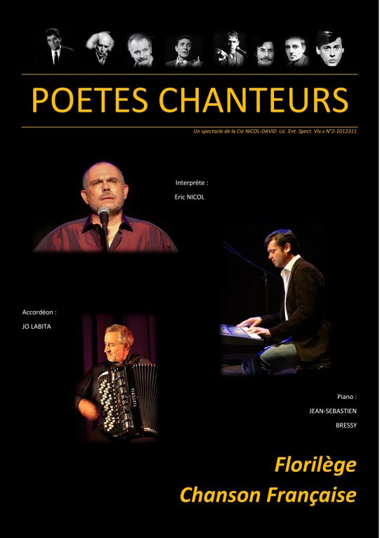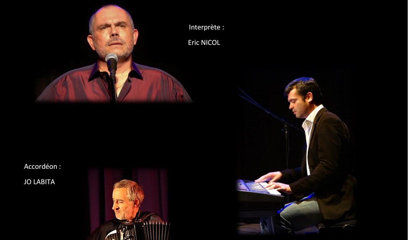 La saison 2021-22 est prête, et elle commence bien : pour la troisième fois, nous accueillons Eric Nicol, qui nous a conquis avec ses spectacles sur Brel d’abord, Reggiani ensuite, et qui revient avec un spectacle sur les poètes chanteurs, ceux qui savaient mettre des mots sur nos maux, et peindre la société comme personne. Leurs chansons trottent dans nos têtes, et nous permettent de mieux encaisser la vie, tout simplement. Avec humour, tendresse, malice, les refrains de Ferré, Brel, Brassens, Ferrat, Nougaro, Bécaud… et tant d’autres, reviennent à nous le temps d’un récital. Eric NICOL, acteur-chanteur, et ses amis musiciens Jean-Sébastien BRESSY et Jo LABITA, font revivre ce répertoire qui est notre héritage. A savourer sans modération…