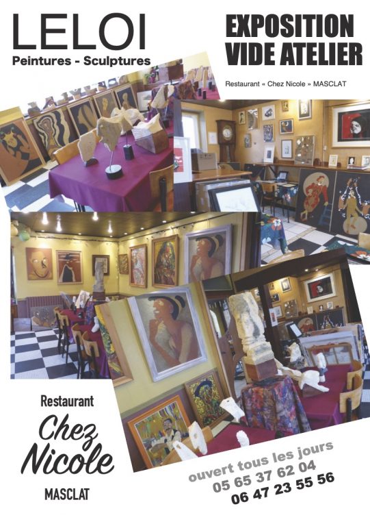 Vide Atelier Publié le mardi, 7 décembre 2021mercredi, 8 décembre 2021 par Brigitte Venez chiner et trouver votre bonheur parmi les peintures et sculptures de Léloi à l’occasion de son vide-atelier !