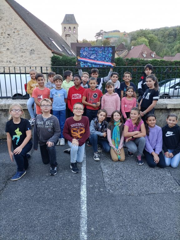 Photo: Tableau réalisé par les enfants de Peyrilles accompagnés de Valérie, Sylvie, Michèle et Karine