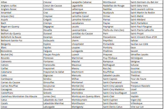 Communes de la 1ere Circonscription du Lot
