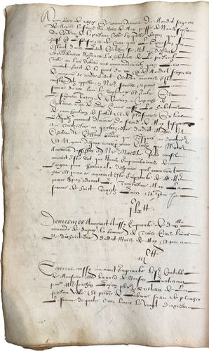 L’an 1619 et le 12 mai, un dimanche matin, environ les 7heures de matin, fut rendu le château de la ville de Gourdon qui était tenu de la part de M. de Thémines, maréchal de France, ceux de la ville le prirent et le démolirent de haut en bas, qui était une forteresse et chateau imprenable sans une armée de roi. Était impossible d’y pouvoir entrer. Fut commandé de l’abattre de (la part de) M. le Duc de Mayenne, prince, lieutenant général de Mayenne, et fut démoli en 7 jours, commençant le 12 et finissant le 19 dudit mois de mai. Moi étant signé.