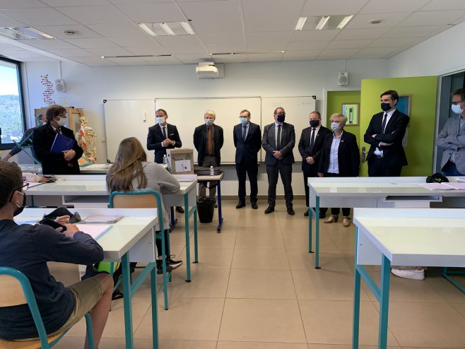Après les écoliers, c’était au tour des 6èmes et des 5èmes de faire leur rentrée ce lundi 18 mai. Michel Prosic, préfet du Lot, Xavier Papillon, le Dasen, Serge Rigal, président du Département, Marc Gastal, vice-président du Conseil départemental en charge de la jeunesse, Geneviève Lagarde, conseillère départementale, Jean-Marc Vayssouze, maire de Cahors, ont ainsi visité le collège Olivier de Magny, à Cahors, en mode déconfinement. Pascal Virlogeux, le proviseur, et Marc Gineste, principal adjoint, ont mené la visite.