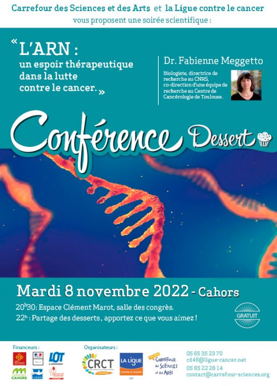 Le 8 Novembre, une conférence une conférence sur L’ARN un espoir thérapeutique dans la lutte contre le cancer.