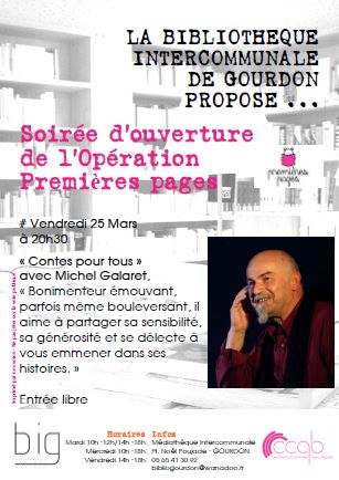 Soirée conte à la Bibliothèque de Gourdon Publié le mardi, 15 mars 2016mercredi, 23 mars 2016 par Bibliothèque Intercommunale Gourdon Soirée conte à la bibliothèque de Gourdon vendredi 25 mars à 20h30. Entrée libre. Tout public