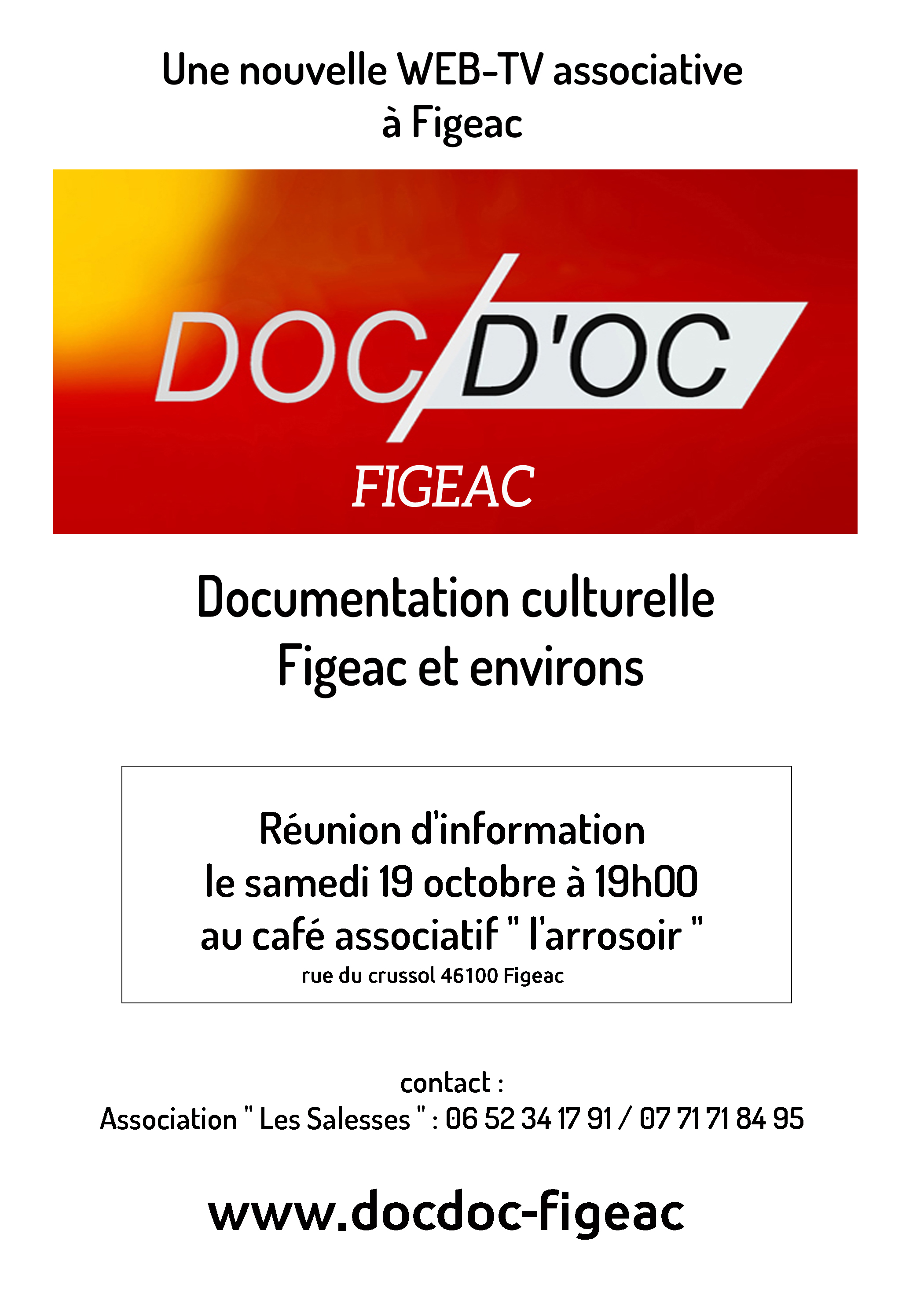 DOCDOC Figeac est une jeune web-tv figeacoise qui participe à la promotion et à la diffusion de la culture sur le territoire local .