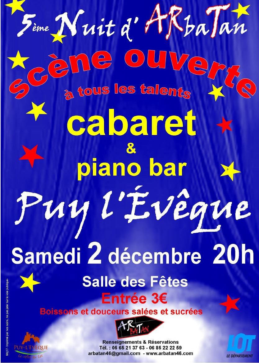 .Pour la cinquième année, l’Association culturelle et intercommunale Arbatan, présente à la Salle des Fêtes, une scène ouverte, le Samedi 2 Décembre à 20h.