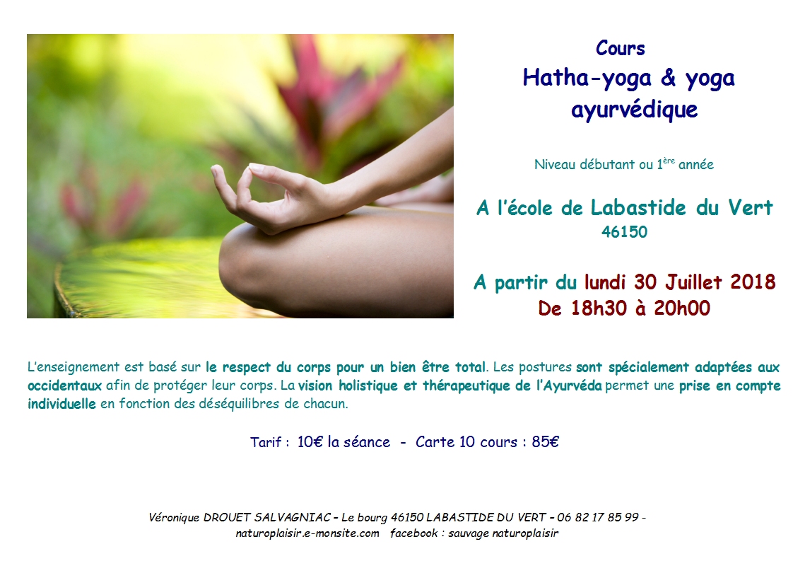 Continuer la lectureCours de Hatha-yoga & yoga ayurvédique Niveau débutant ou 1ère année A l’école de Labastide du Vert 46150 A partir