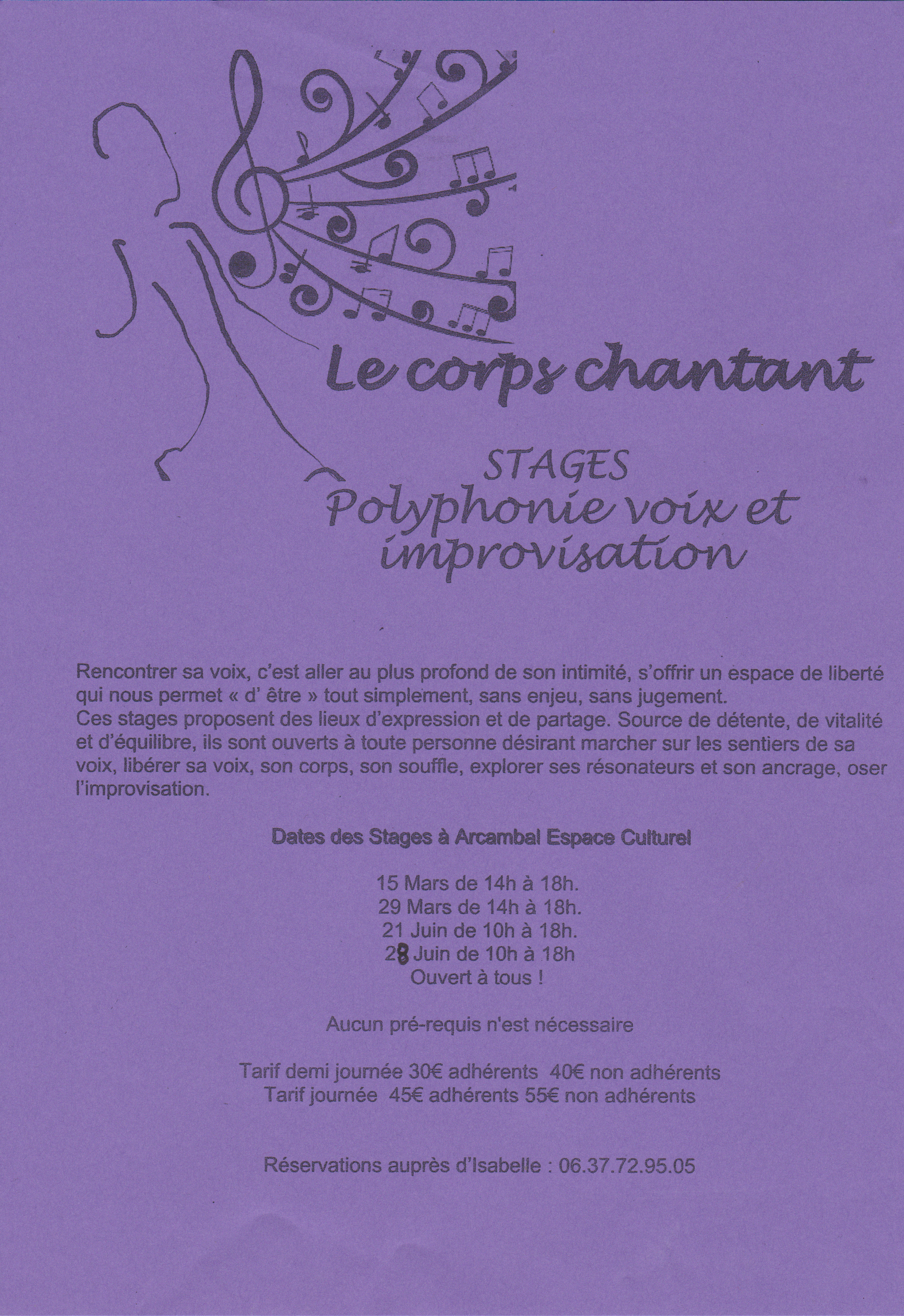 Continuer la lecturej’ai le grand plaisir de vous transmettre le programme des stages d’improvisation que j’organise prochainement à Arcambal. Ces stages ne