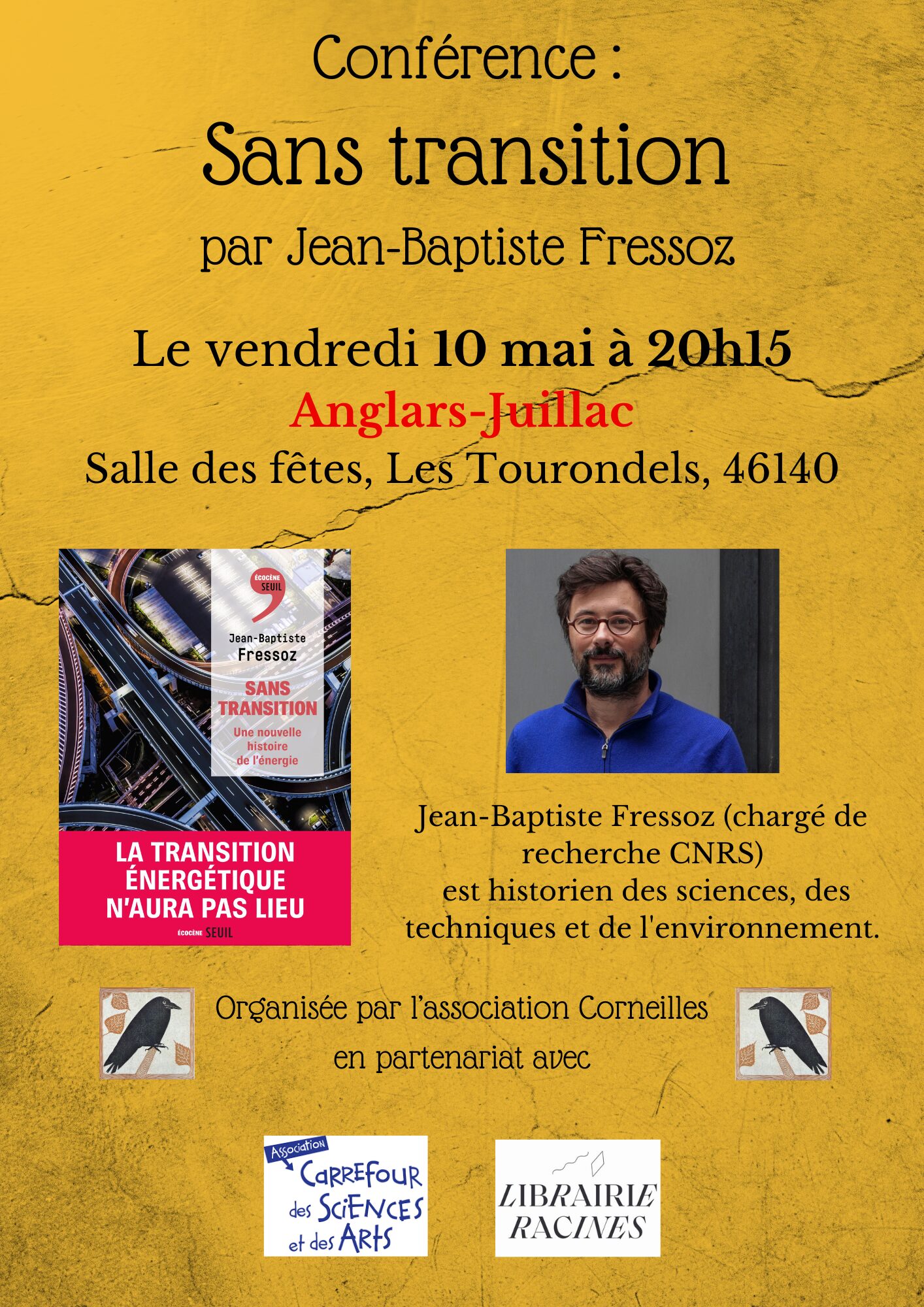Continuer la lectureLe 10 mai à 20h15 à la salle des fêtes d’Anglars-Juillac, Jean-Baptiste Fressoz, historien des sciences, des techniques et de