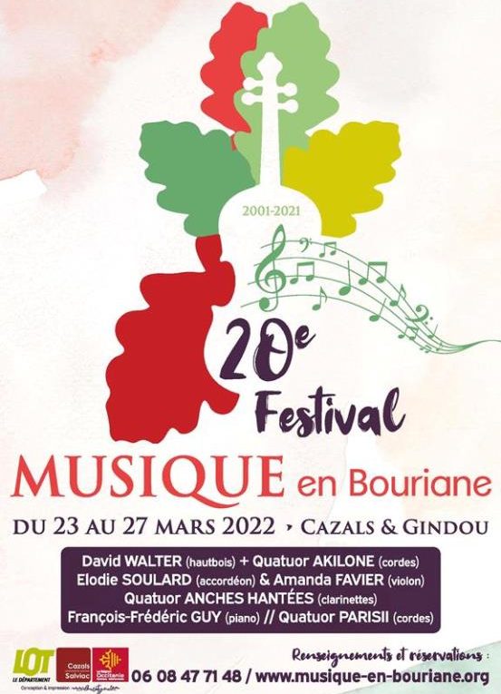 20ème Festival Musique en Bouriane – 23 au 27 mars 2022 – Eglise de Cazals (23, 24 25) et Arsénic, Gindou (26, 27)