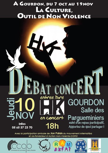 Débat-concert « Sans haine, sans arme, sans violence », avec la participation du chanteur engagé HK et de l’activiste non-violent Jon Palais