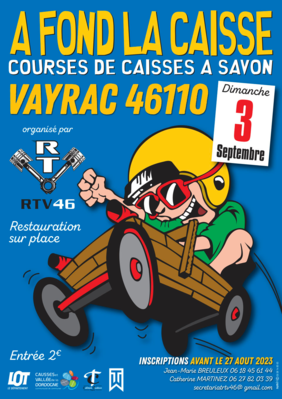 Pour plus amples informations pour gagner sa place au volant d’une des trois caisses à savon mise à disposition par la club https://www.vayrac.fr/agenda-actualites/agenda/evenement/2e-caisse-a-savon-a-vayrac