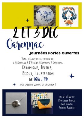 Vous êtes invités aux Journées Portes Ouvertes de l’Atelier de la céramiste Pauline Audubert – 46110 CARENNAC – Samedi 2 et dimanche 3 décembre de 10h à 19h .