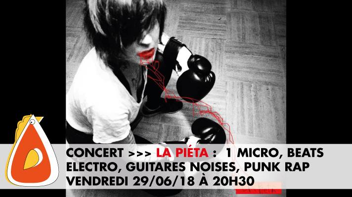 vendredi 29 juin à la Poule aux Potes La pietà: électronique, éclectique, électrique, tantôt slameuse, tantôt mélodique. Rendez-vous à partir de 20 h 30.