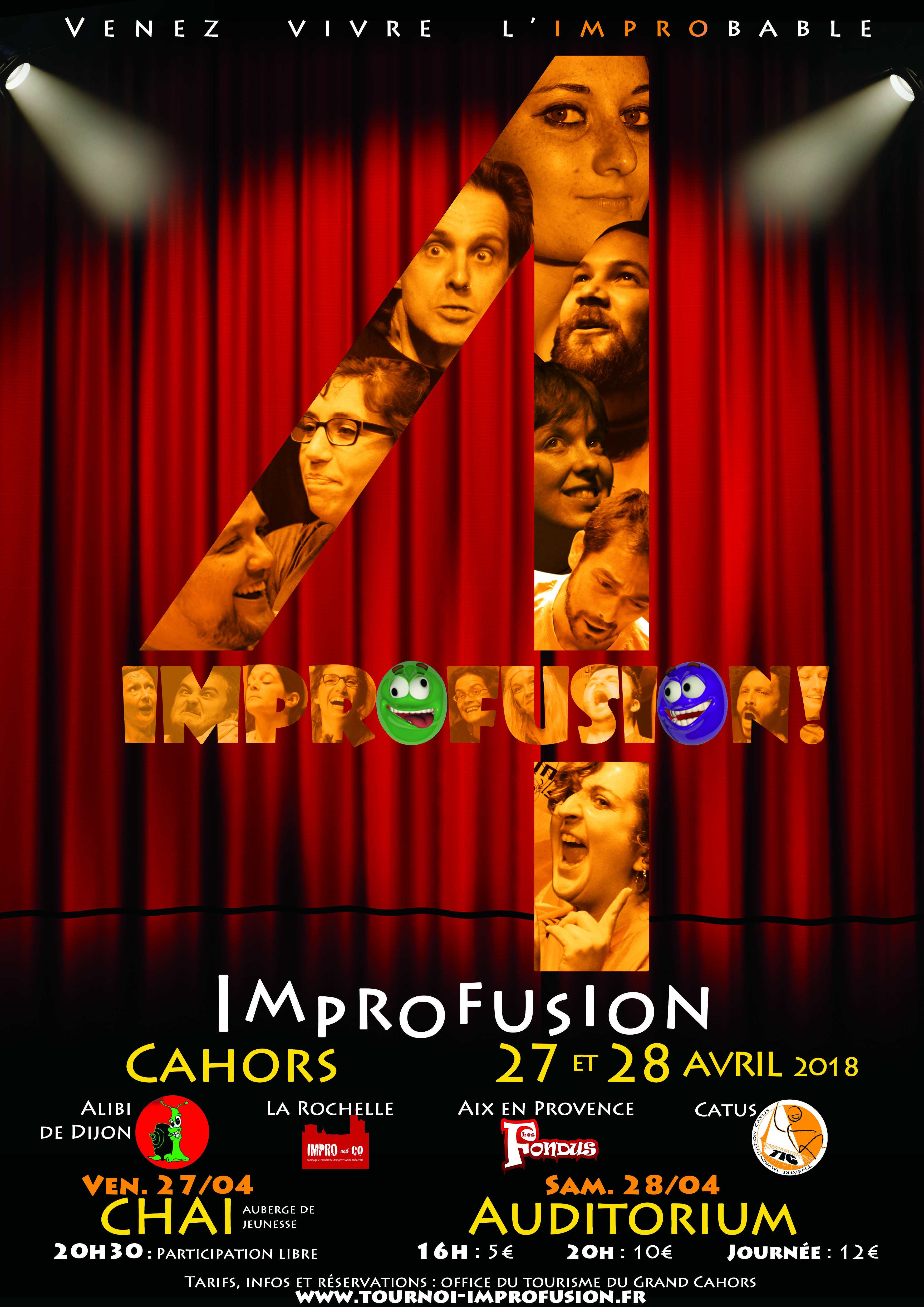 ènement de l’improvisation théâtrale lotoise « IMPROFUSION » revient cette année pour une 4ème édition ! Des acteurs venus de La Rochelle, Aix en Provence et Dijon prendront la route de Cahors pour des rencontres inédites de théâtre d’improvisation à l’initiative de l’équipe du T.I.C. de Catus, les organisateurs de l’évènement.