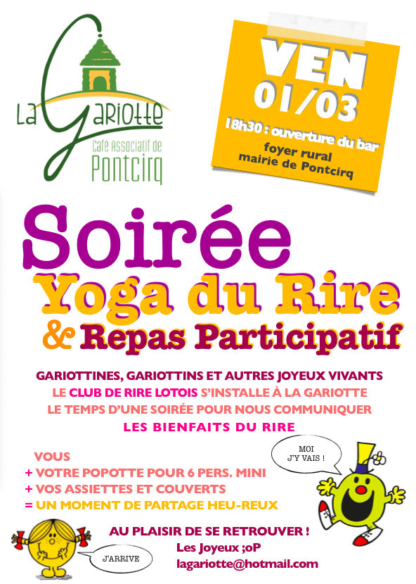 Encore désolée par contre les seances de yoga du rire ont lieu le mercredi soir de 18h30 a 19h30
