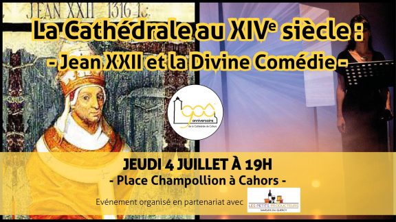 Après un marché gourmand aux reflets du XIIIème siècle le 20 juin dernier, le 900ème emmène ce jeudi petits et grands au cœur du XIVème siècle ! A cette époque, la cité cadurcienne brille par la réputation de certains de ses habitants : Jacques Duèze, plus connu sous le nom du Pape Jean XXII, et les Cahorsins, personnages emblématiques de la Divine Comédie de Dante… Ces derniers seront donc les égéries de cette soirée gourmande et théâtrale ! Les Petits Producteurs et l’Auberge des Gabares sont des partenaires fidèles du 900ème ! Les deux enseignes ont donc décidé d’accompagner les festivités en organisant ce jeudi 4 juillet, à 19 h, une soirée dégustation avec la présentation de la cuvée du Pape Jean XXII ((initialement créée lors de l’année Alain de Solminihac) ! Vignerons, créateur de l’étiquette ou encore initiateurs du projet seront présents pour présenter les secrets et délices de ce triptyque de bouteilles. Le public sera ensuite invité à découvrir cette dernière en la dégustant, accompagnée de quelques planches de tapas et de charcuterie.