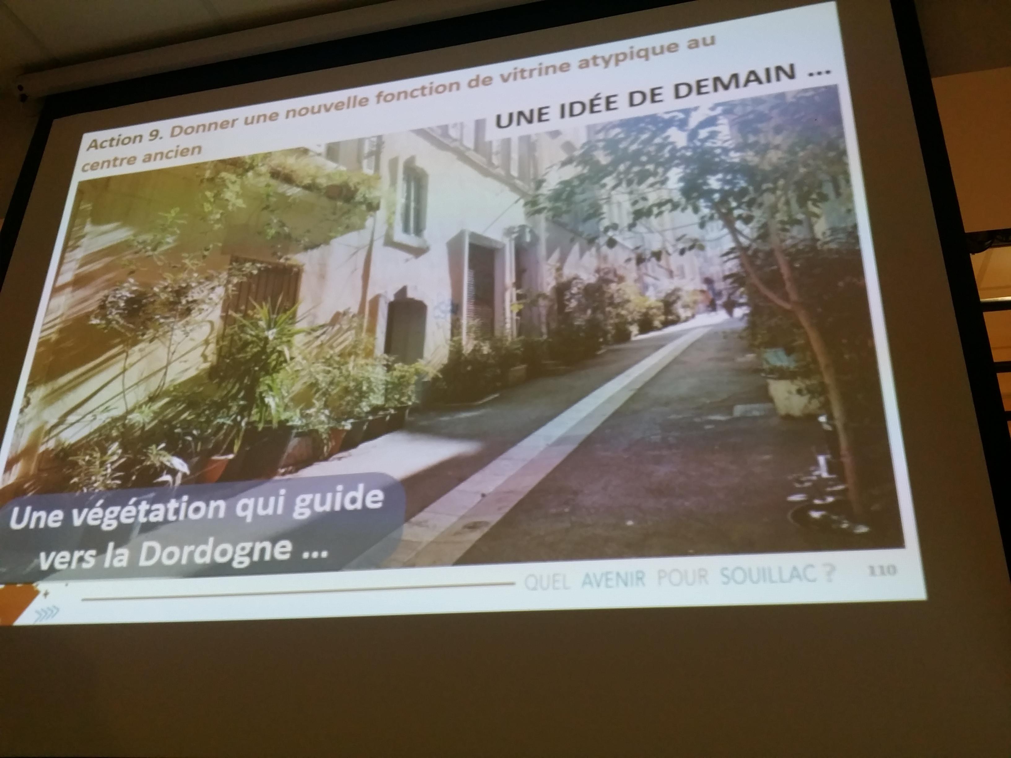 La présentation était donc celle d’un plan d’actions qui fera l’objet de déclinaisons plus précises au fur et à mesure de la rédaction des différents cahiers des charges. Il était financièrement impensable de repenser tout Souillac, et les choix proposés ont ciblé les endroits clés de la ville avec tout ce que cela comportera comme conséquences et de changements d’habitudes pour les uns ou pour les autres.