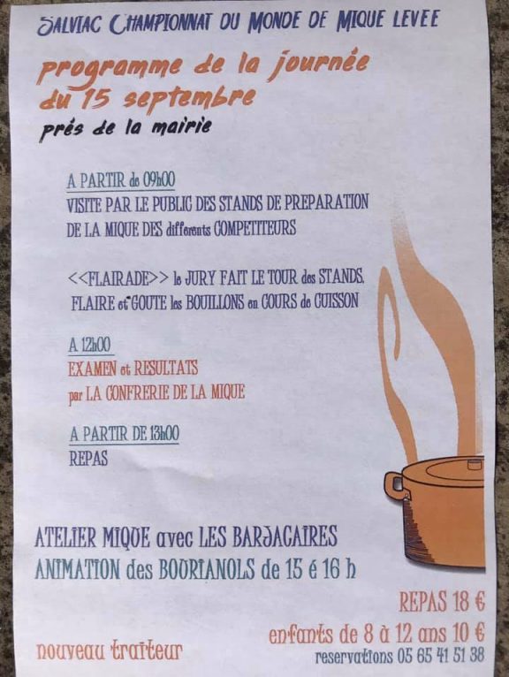 Championnat du Monde de Mique levée Publié le vendredi, 13 septembre 2019vendredi, 13 septembre 2019 par Catherine Grillo .Dimanche 15 septembre 2019 à Salviac 4ème Championnat du Monde de Mique levée .