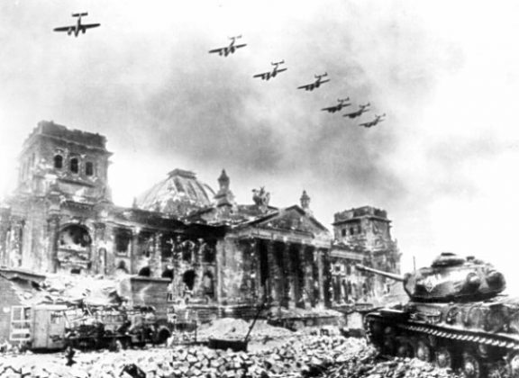 NB : la ratification de la capitulation à Berlin ayant été enregistrée en URSS le lendemain, à 01h01 (heure de Moscou), c’est le 9 mai que, depuis lors, Soviétiques et Russes commémorent leur victoire dans la « Grande Guerre patriotique ».