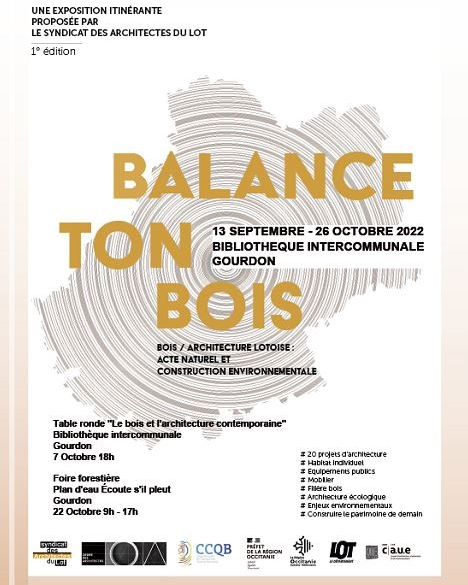 – Exposition itinérante proposée par le Syndicat des Architectes du Lot- en partenariat avec le Département du Lot et le réseau Plantes et Cie: » Balance ton bois »
