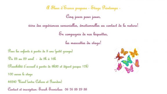 !!! Nouvelles dates: du lundi 2 mai au vendredi 06 mai