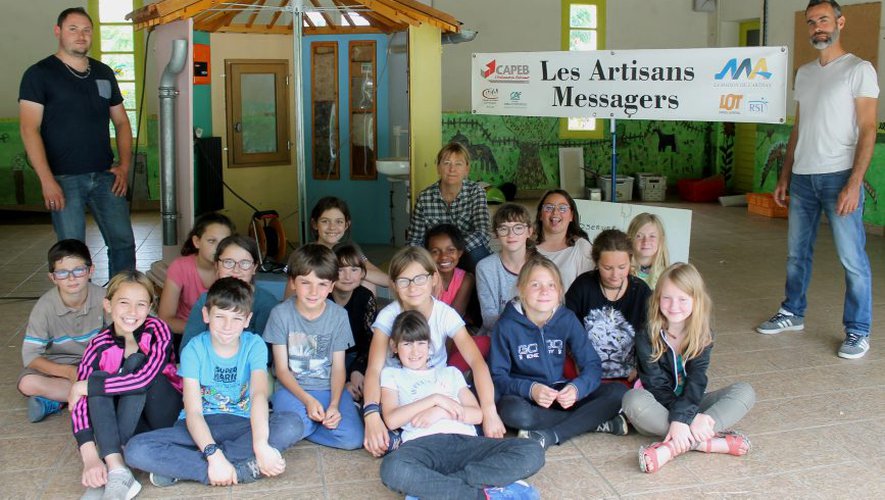 La classe de CM1/CM2 de Castelfranc dirigée par Annick Archeray a reçu vendredi 21 juin deux membres de l’association les Artisans messagers, basée dans la maison des artisans dans le quartier de Terre Rouge à Cahors. L’enseignante demande tous les deux ans cette visite, afin d’initier ses élèves aux métiers de l’artisanat, en l’occurrence ceux du bâtiment.