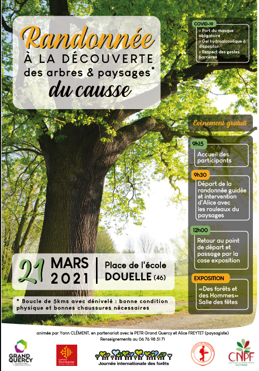 Le Centre Régional de la Propriété Forestière (CRPF), en partenariat avec le Pôle d’Equilibre Territorial et Rural (PETR) du Grand Quercy et Alice Freytet, paysagiste, vous invitent A la découverte des paysages et arbres des Causses.