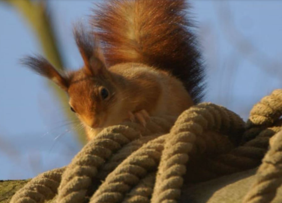 Pour habituer les écureuils à emprunter ce « passage piéton » dans les branches, des mangeoires sont en place temporairement.