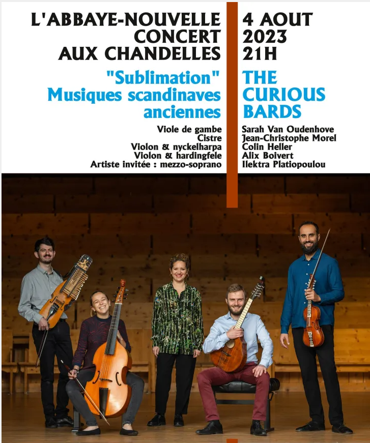 Cette année, des instruments méconnus :Cistre, Nyckelharpa, Hardingfele, viole de Gambe. et une chanteuse Mezzo-Soprano.