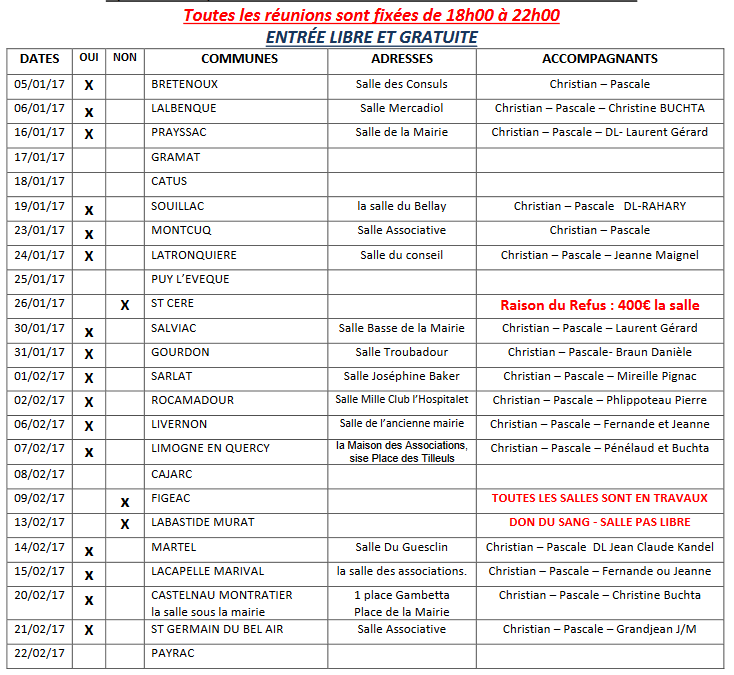 De plus, du 5 janvier au 22 février, Aéré 46 partira en tournée à travers le Lot, pour aller à la rencontre des malades et sensibiliser le public. Des tests d’apnée du sommeil et des simulations de BPCO seront effectués «pour se faire une idée de la souffrance du malade assisté en permanence». Ce tour du département commencera à Bretenoux et terminera à Payrac. Il comptera une vingtaine d’étapes.