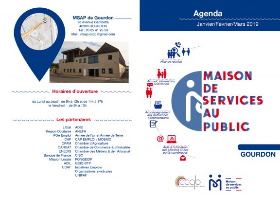 Portée par la Communauté de Communes Quercy Bouriane, la Maison de Services Au Public (MSAP) est un lieu dans … Lire la suite de Agenda du 1er trimestre des actions de la MSAP de Gourdon