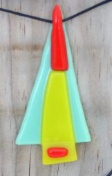 J’utilise des baguettes de verre colorées dans la masse. Le travail du verre est réalisé à la flamme pour le filer et le mettre en forme.