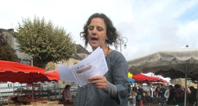 .Comme au Moyen Âge, la cité médiévale de Gourdon est animée lors de son marché du samedi par une crieuse fort sympathique Anne Laure