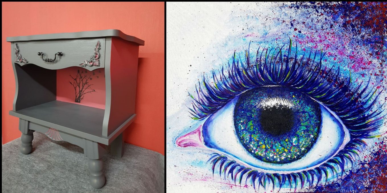 Des meubles réalisés avec du bois de récupération. Ses œuvres sont confectionnées dans des couleurs colorées, le rouge étant la couleur préférée d’Andréa. Elle peint aussi de jolis tableaux qui sont visibles à son atelier situé au Vigan.
