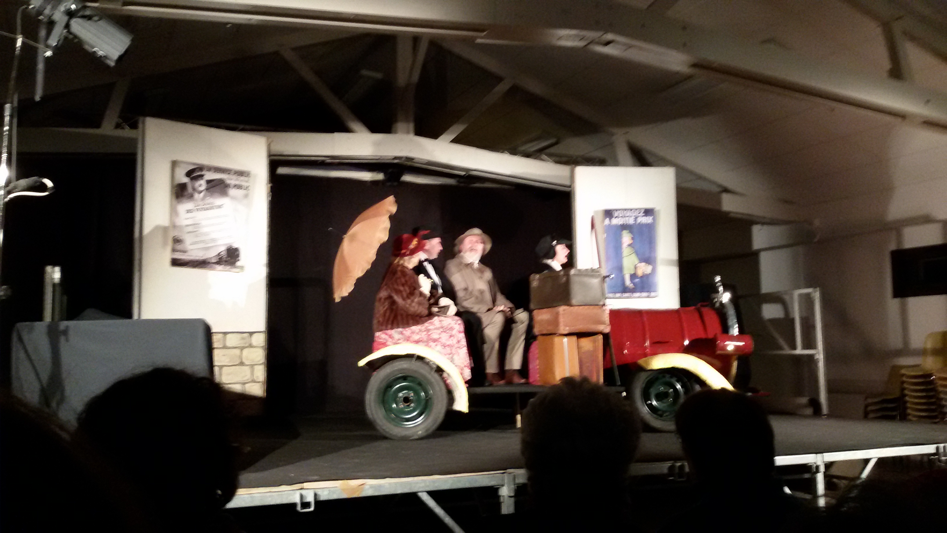Quel bon moment on a passé avec la troupe de Belaye! ça commence par une extraordinaire vieille guimbarde au fonctionnement (ou dysfonctionnement) extravagant. C’est joué avec élégance et conviction; évidemment le texte de Jules Romain est excellent. Et les spectateurs de Concores sont épatants: ambiance joyeuse et familiale.