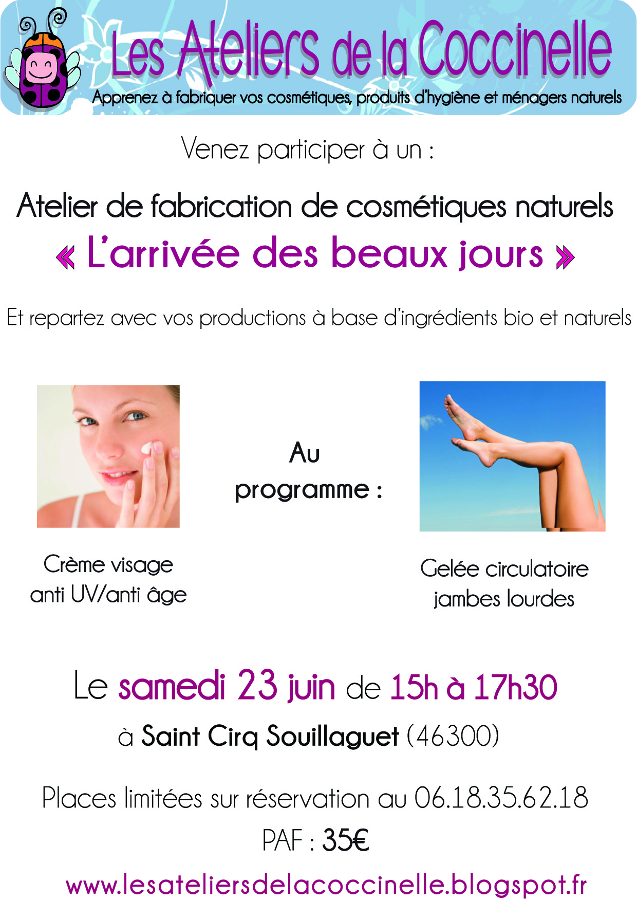 Atelier de fabrication de cosmétiques naturels thème « L’arrivée des beaux jours » le 23 juin