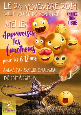 Émilie Chaumeau, dans cet atelier « Apprivoises tes Émotions » alternant jeux de rôles, temps d’écoutes et de paroles dans la bienveillance , invite et accompagne l’enfant à mieux reconnaître les émotions, à les exprimer pour mieux les apprivoiser dans son quotidien et ainsi amener plus de douceur dans sa relation à lui et aux autres.