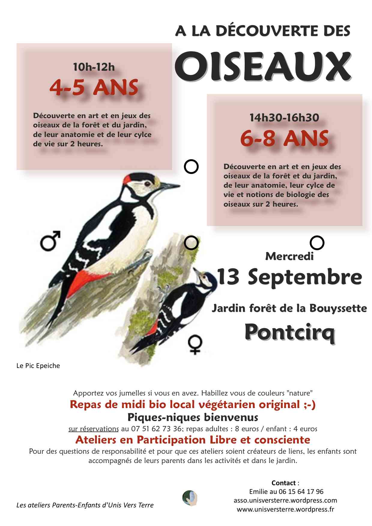 Le mercredi 13 septembre, au Jardin Forêt de la Bouyssette, Unis Vers Terre propose deux ateliers découverte des oiseaux de la forêt avec Alice: un temps de partage et d’apprentissage avec nos chérubins, un temps de connexion à la beauté de la nature !