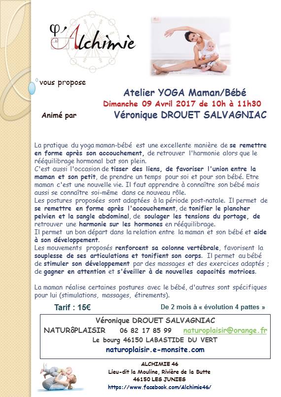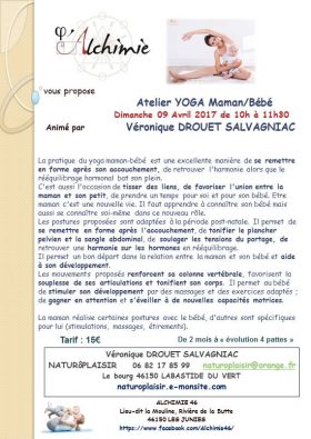Organisé par Véronique DROUET SALVAGNIAC « NATUROPLAISIR », moment de partage et de douceur allié aux bienfaits corporels du yoga post-natal.