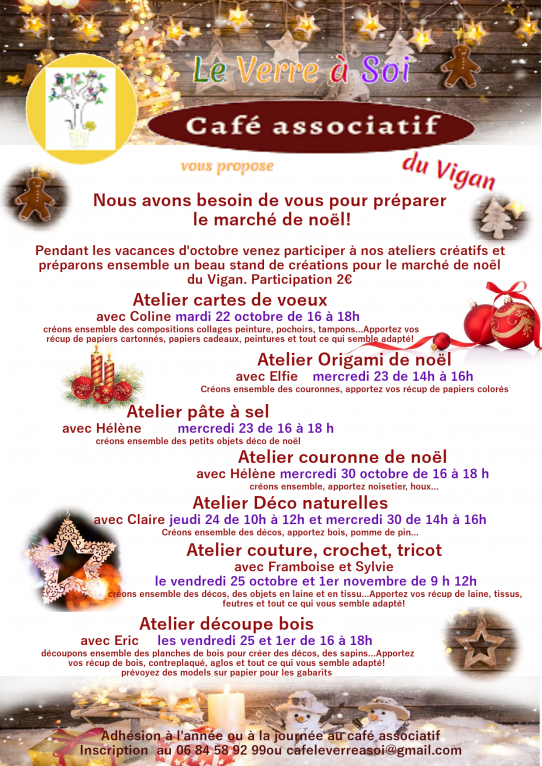 Inscrivez vous au 06 84 58 92 99 ou par mail au  cafe.leverreasoi@gmail.com