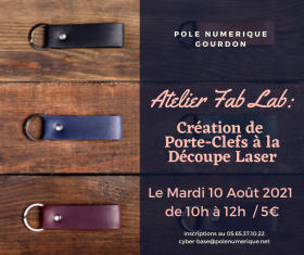 Découverte de la Découpe laser, création de porte-clés avec des chutes de cuir et autres matériaux.