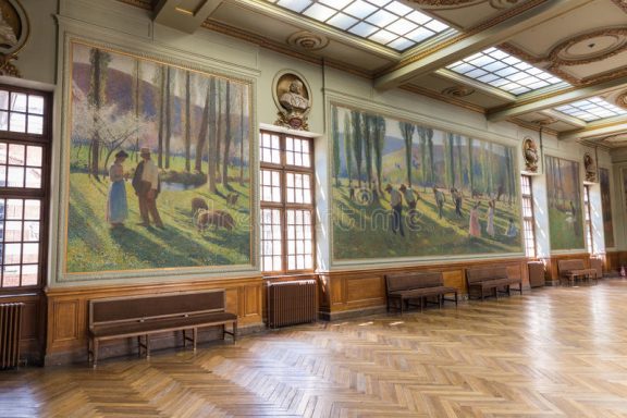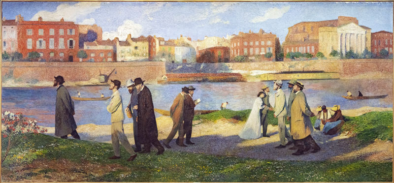 Un musée à l’entrée gratuite pour les Toulousains et les touristes. Voilà ce qu’est le Capitole avec ses salles d’apparat. Et dans cet ensemble, dont la salle des Illustres est le sommet, prend place un musée dans le musée. Avec ses peintures post-impressionnistes, de style pointilliste, qui reproduisent des scènes du quotidien à la campagne ou sur les berges de la Garonne, le peintre toulousain Henri Martin (1860-1943) a légué, dans une salle qui porte son nom, un héritage plus moderne que les traditionnelles allégories académiques. En 1900, l’Etat a passé commande de ces grandes fresques qui, comme l’observe Virginie Lugol, architecte en charge de la restauration de la salle avec Jérémie Harter, portent aussi la marque de la IIIe République et de ses valeurs, notamment par la présence de Jean Jaurès, ami du peintre.