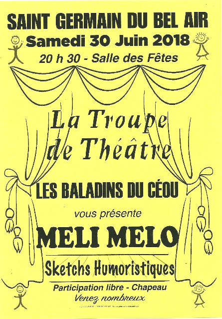 Continuer la lecture. Le 30 juin 20h30 à la salle des fêtes de Saint Germain du Bel Air les Baladins du Céou