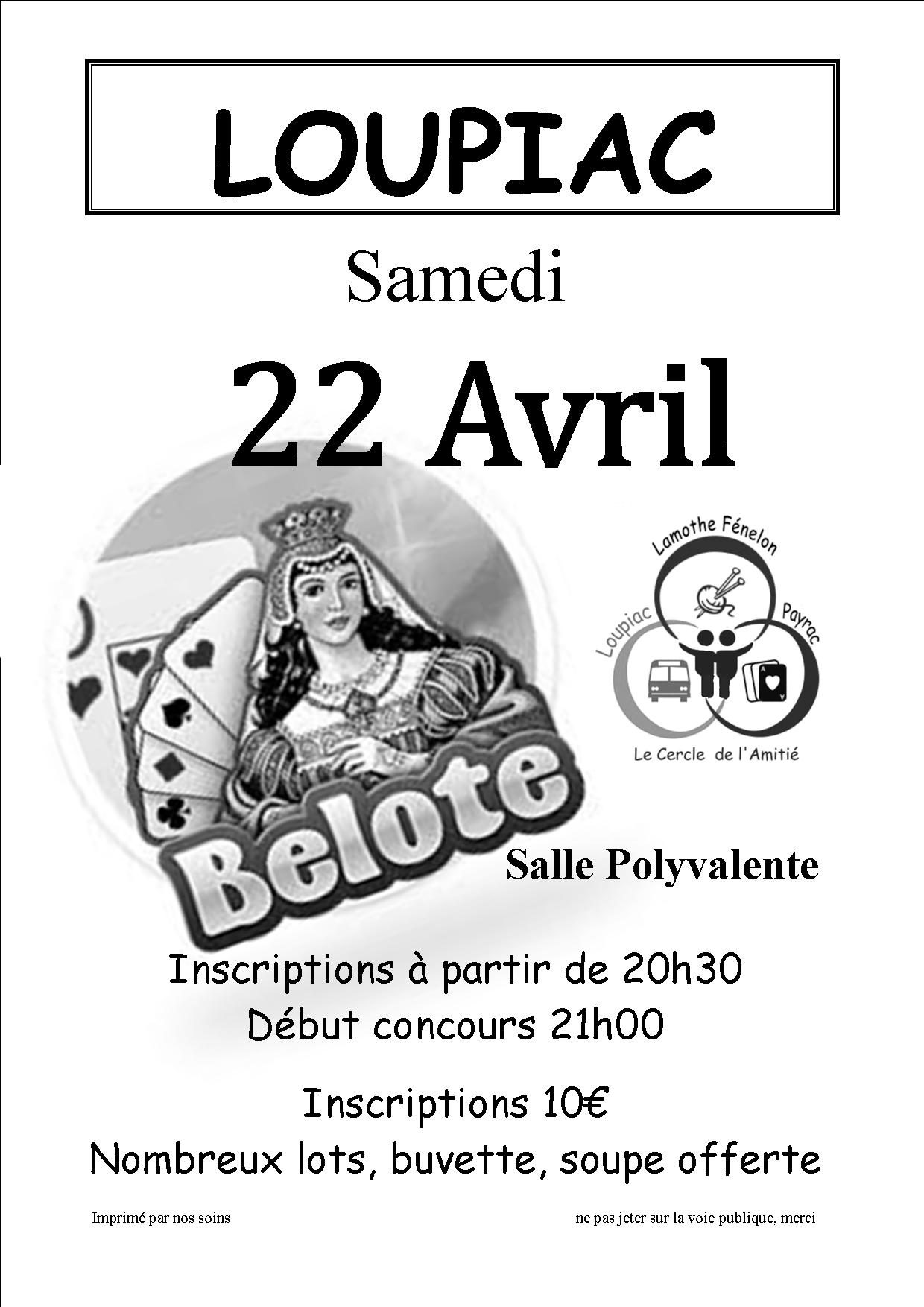 Continuer la lecture.Le cercle de l’amitié Payrac-Loupiac-Lamothe-Fénelon organise un concours de belote ouvert à tous le samedi 22 avril. Participation de 10