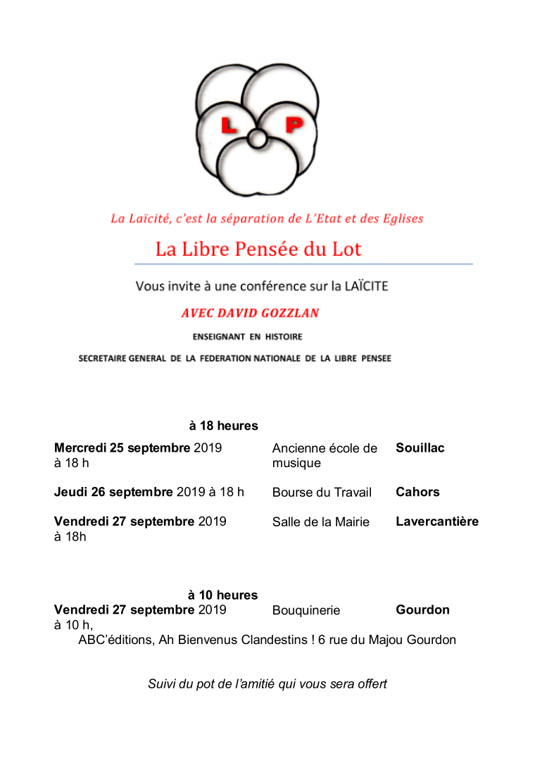 Libre Pensée 24 et 46 Avec Sylvie Lemasson samedi 18 décembre 14h30 SALLE DE RECEPTION DE LA BOURSE DU TRAVAIL