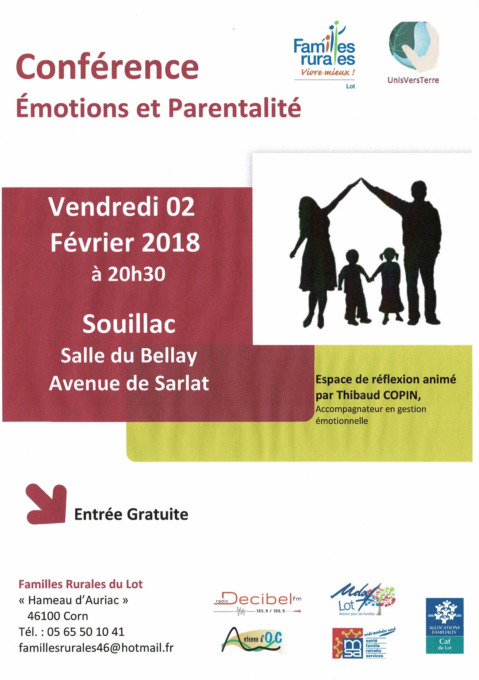 . La Fédération Familles Rurales du Lot met en place une conférence « Émotions et Parentalité » animée par Thibaud Copin, accompagnateur