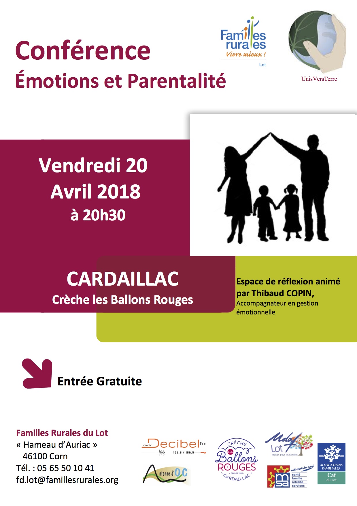Continuer la lectureLa Fédération Familles Rurales du Lot met en place une conférence « Émotions et Parentalité » animée par Thibaud Copin, accompagnateur en