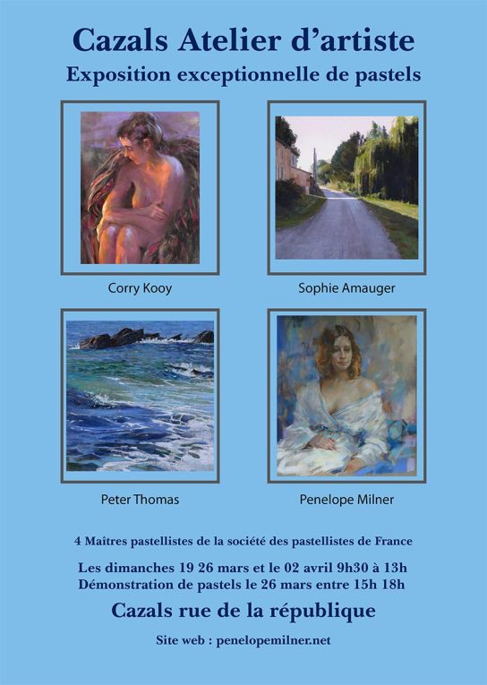 Continuer la lectureJe suis ravie d’exposer mes pastels à Cazals avec des œuvres de Peter Thomas, Corry Kooy et Sophie Amauger pendant