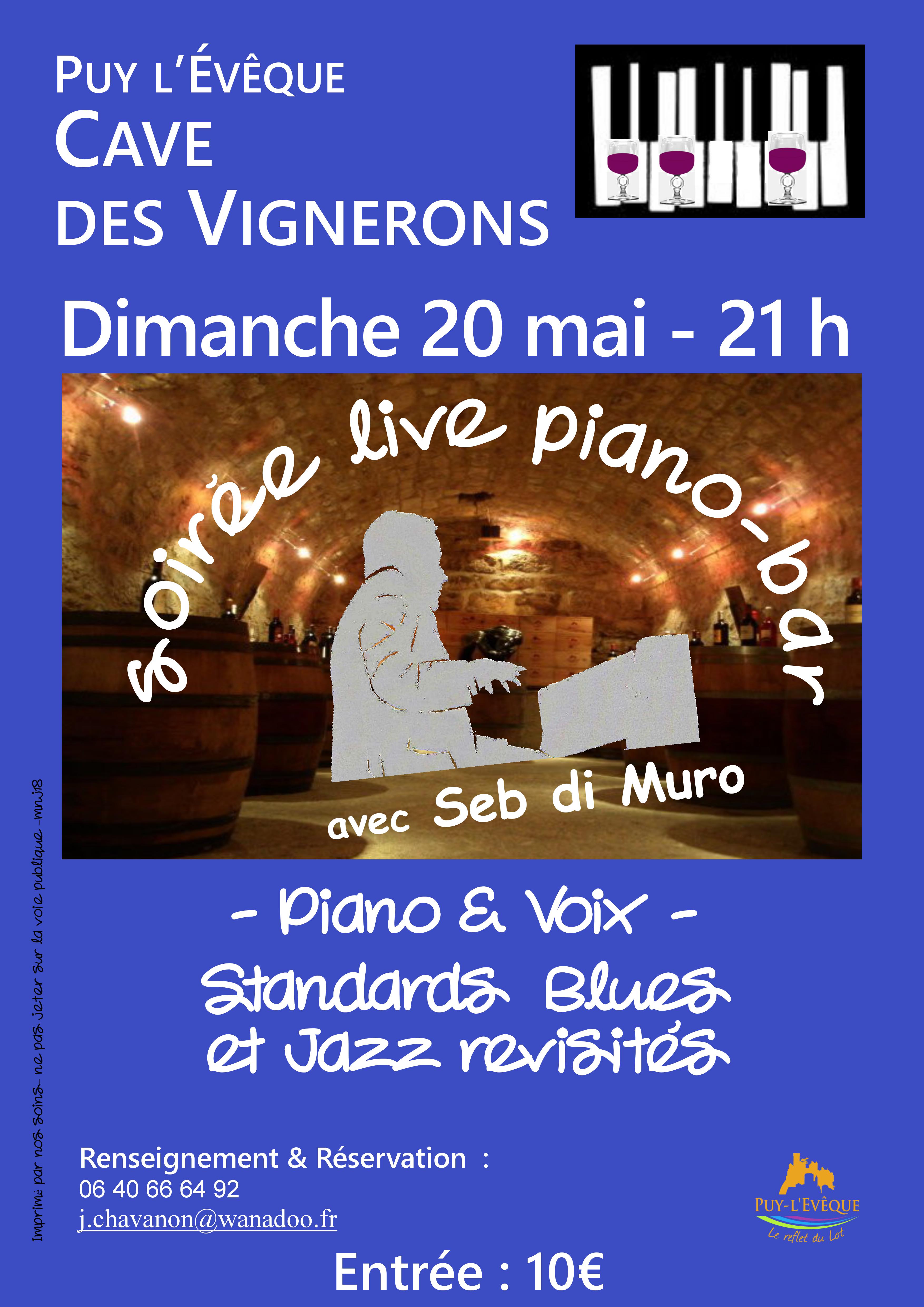 SOIRÉE LIVE PIANO-BAR avec Seb di Muro Dimanche 20 mai à 21h à la Cave des Vignerons de Puy-l’Évêque Renseignements